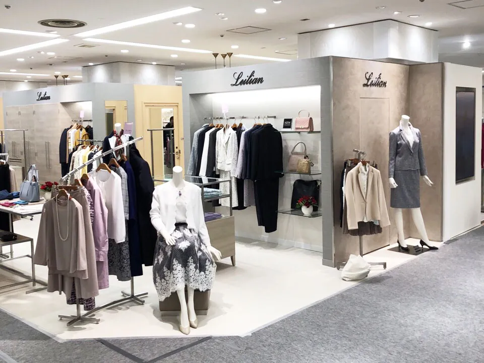 働くスタッフの主体性や個性を大切にし、その人らしい接客スタイルを創造してほしいと考えています。店内にも様々な工夫があります。例えば、フィッティングルーム。通常であれば狭く、ストレスを感じてしまう空間ですが、レリアンでは、通常よりも広い空間で、明るさも店内と同じになるように調整しています。鏡も2面に付けられ、横からのシルエットも楽に確認できるようにしています。「試着がしやすいわ」とお客様にもとても好評です。