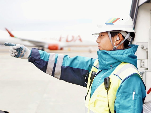 飛行機の誘導から乗り降りに必要なPBB(旅客搭乗連絡橋)の装着、貨物の搭載まで、空港の最前線で幅広い経験ができる仕事。飛行機を間近で見られる非日常的空間が職場なので、大きなやりがいを味わえます。