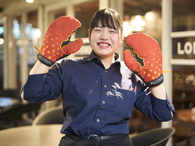 レッドロブスターのホールは、タッチパネルではなく人が注文をうかがう接客スタイル。だからこそ、お客様の表情や声に直接触れながら仕事ができます。記念日やお祝いで来店される方も多く、「あなたが担当でよかった」「ありがとう」という言葉をもらえる機会が日常的にあります。料理を運ぶだけでなく、その場の空気や時間をつくる役割を担うのがホールの魅力。人と関わることが好きな方にぴったりの仕事です。